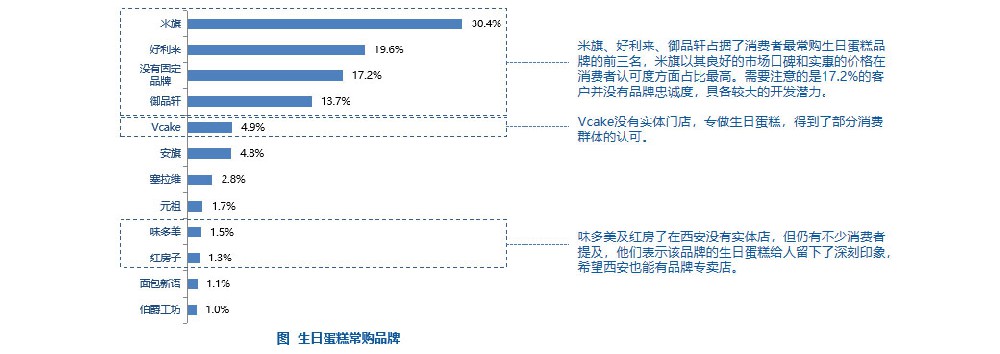 研究發現1:米旗/好利來/御品軒等生日蛋糕受市場認可度高
